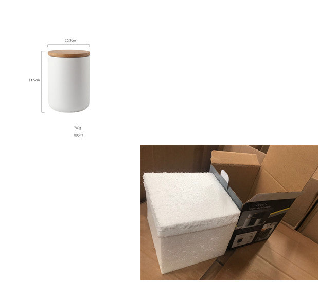 Kitchen ceramic wooden lid sealed storage jar