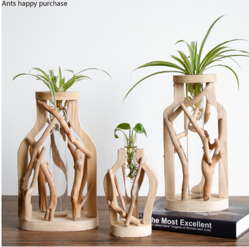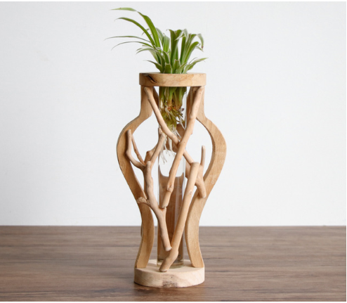 Pure Handwork Wooden Vase Decorated Solid Wood Flower Pot For Creative Glass Floral Hydroponic Container Home Decorative Vase
