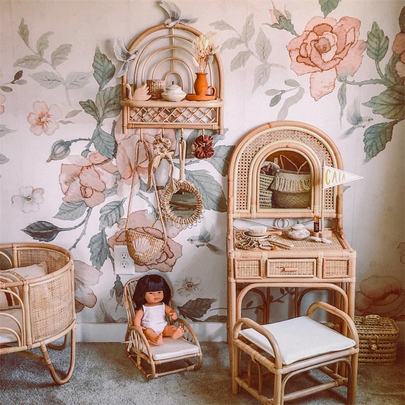 Retro Creative Real Rattan Wall Shelf